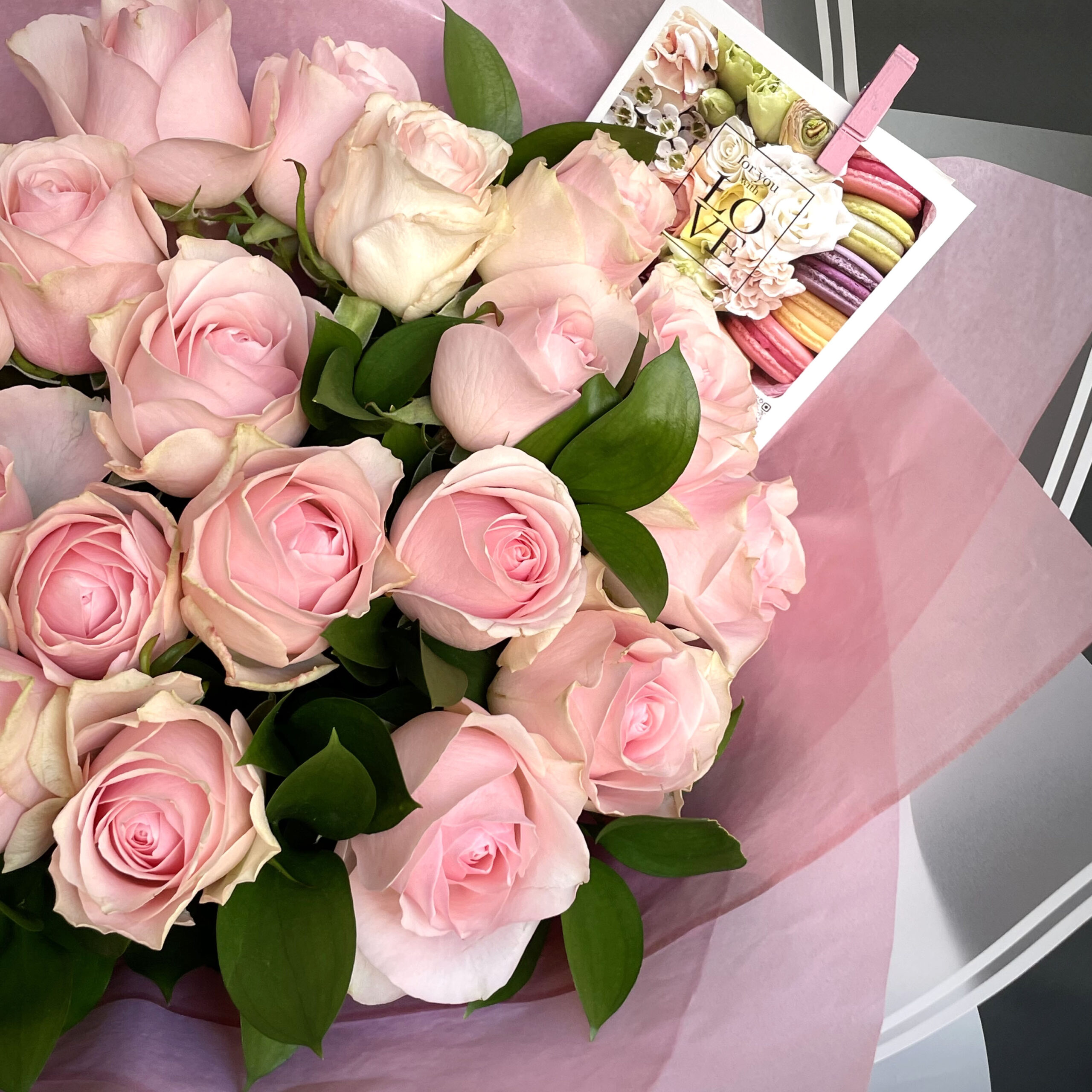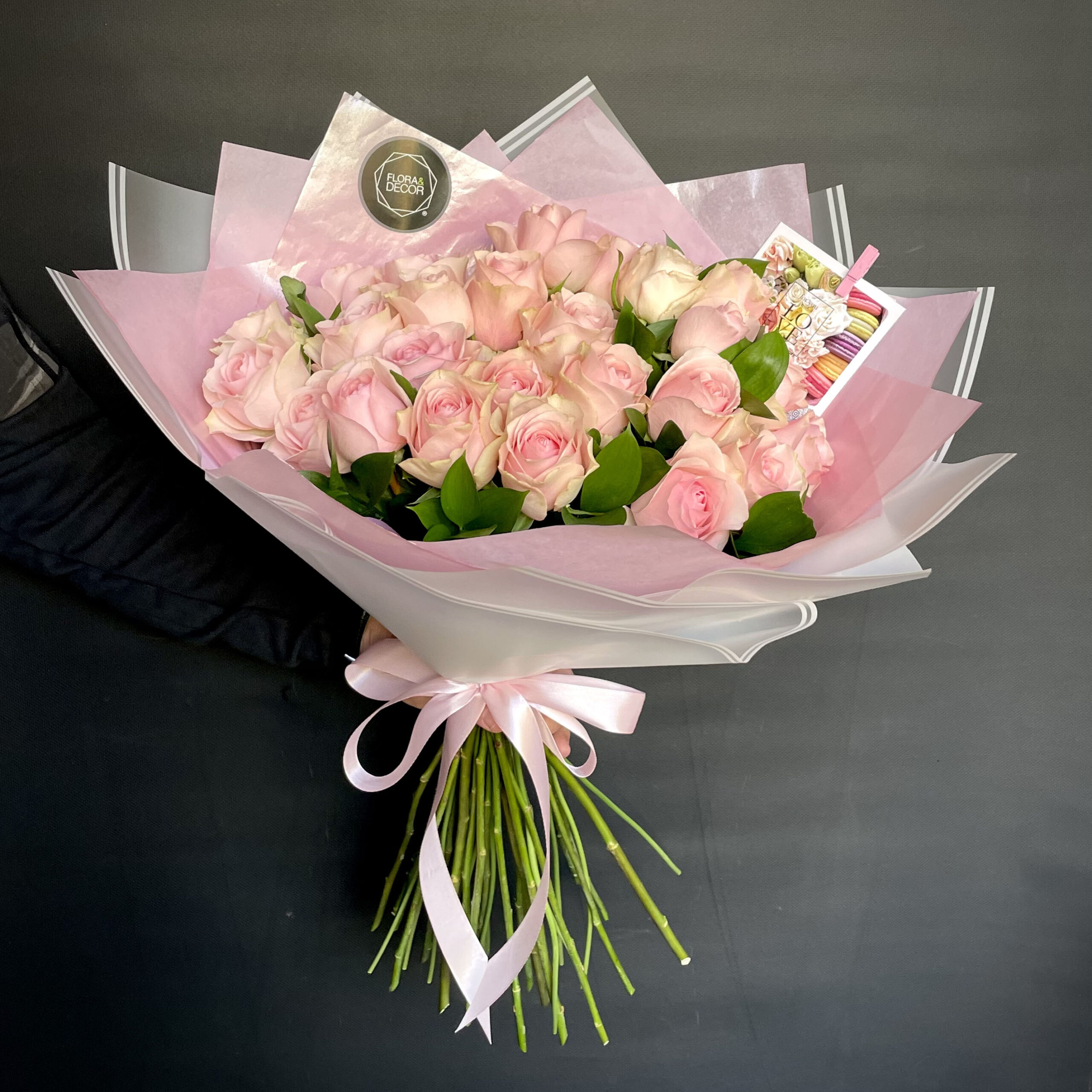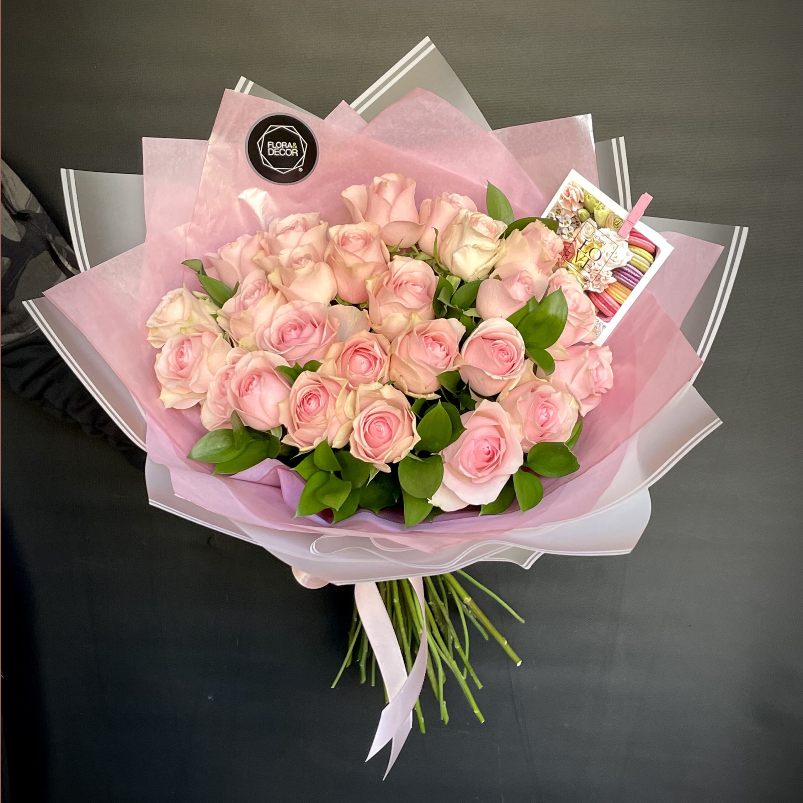 A beautiful and classical bouquet of 25 pink premium roses in elegant multi-layer wrapping!
