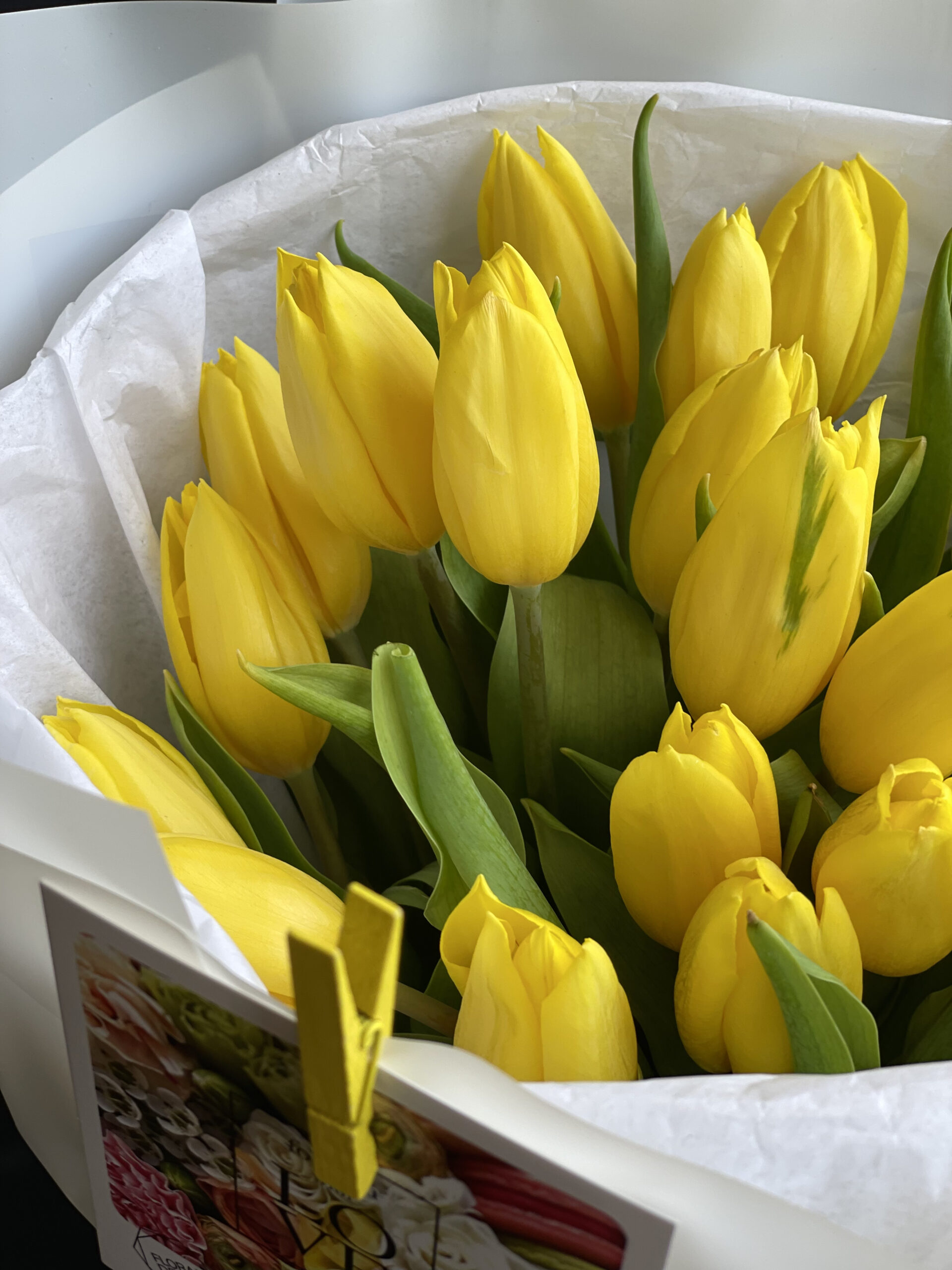 A mono-bouquet of 29 yellow Dutch tulips